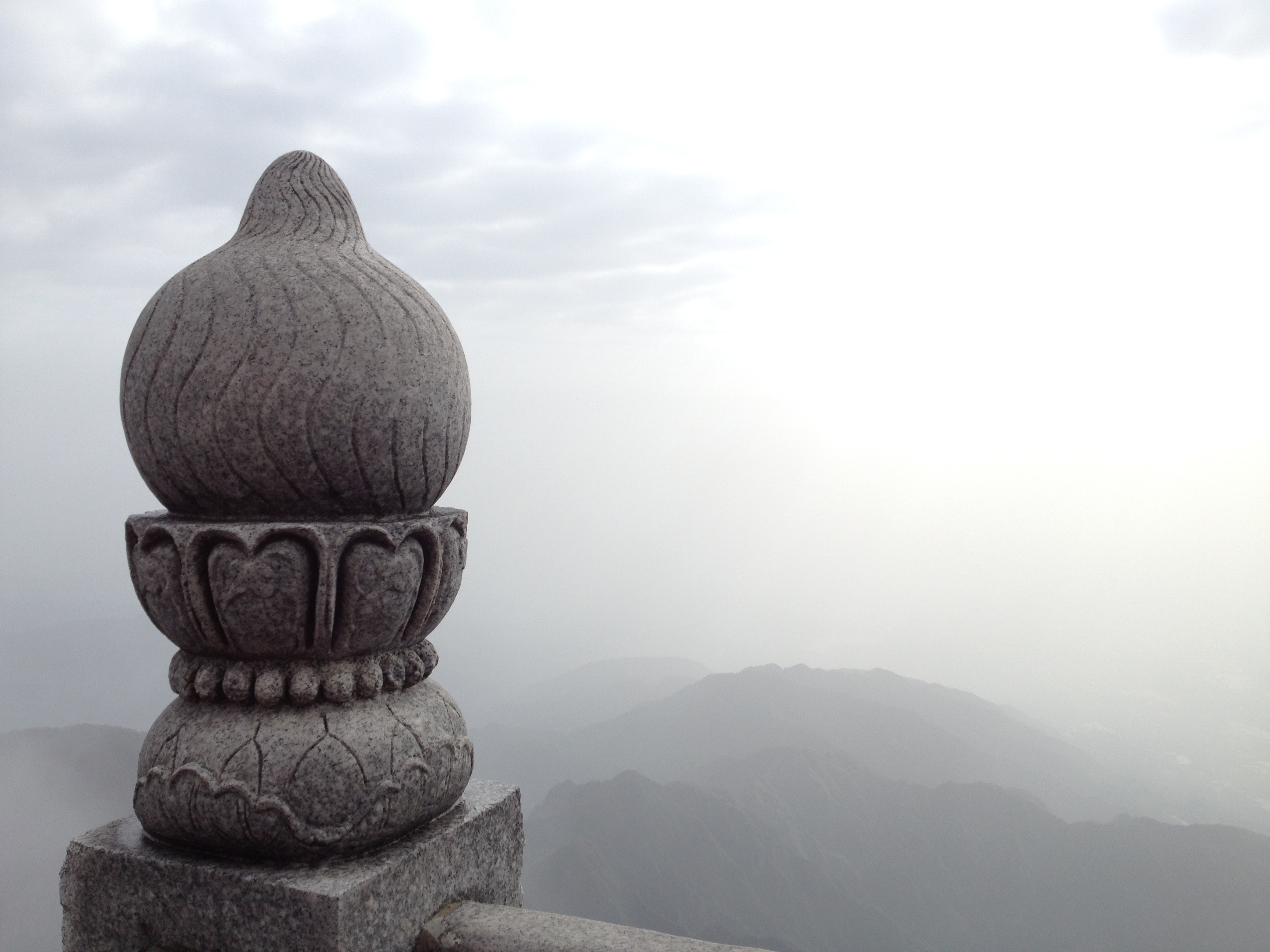 Majesty would be a good word. This is what you build on the top of a mountain – this statue, and the temples surrounding it. This monument to the sky – I can feel the significance and power of the place, which settles deeper than the tour groups can hope to overcome, try as they might. I climb the last flights of stairs behind the Buddha, and then there are to more steps. I am on the summit. I feel my face relax into a smile as I go to the ledge to look over the mountains. It’s breathtaking, sunrise or no. I can go no higher, and it’s the best feeling I’ve had in a while. It’s completion and satisfaction, coupled with admiration and delight.