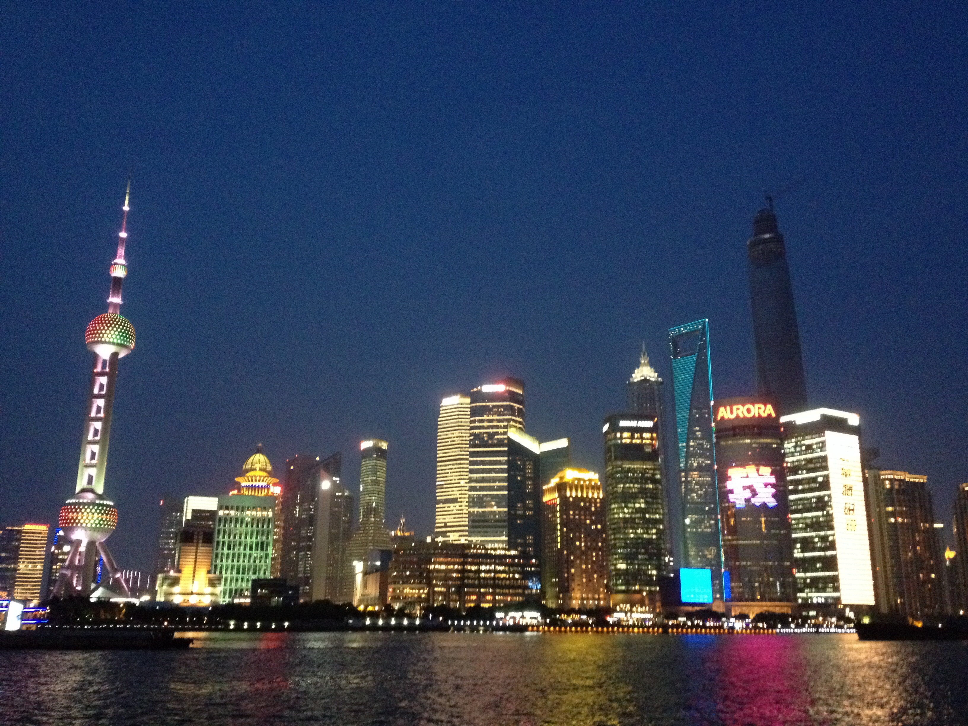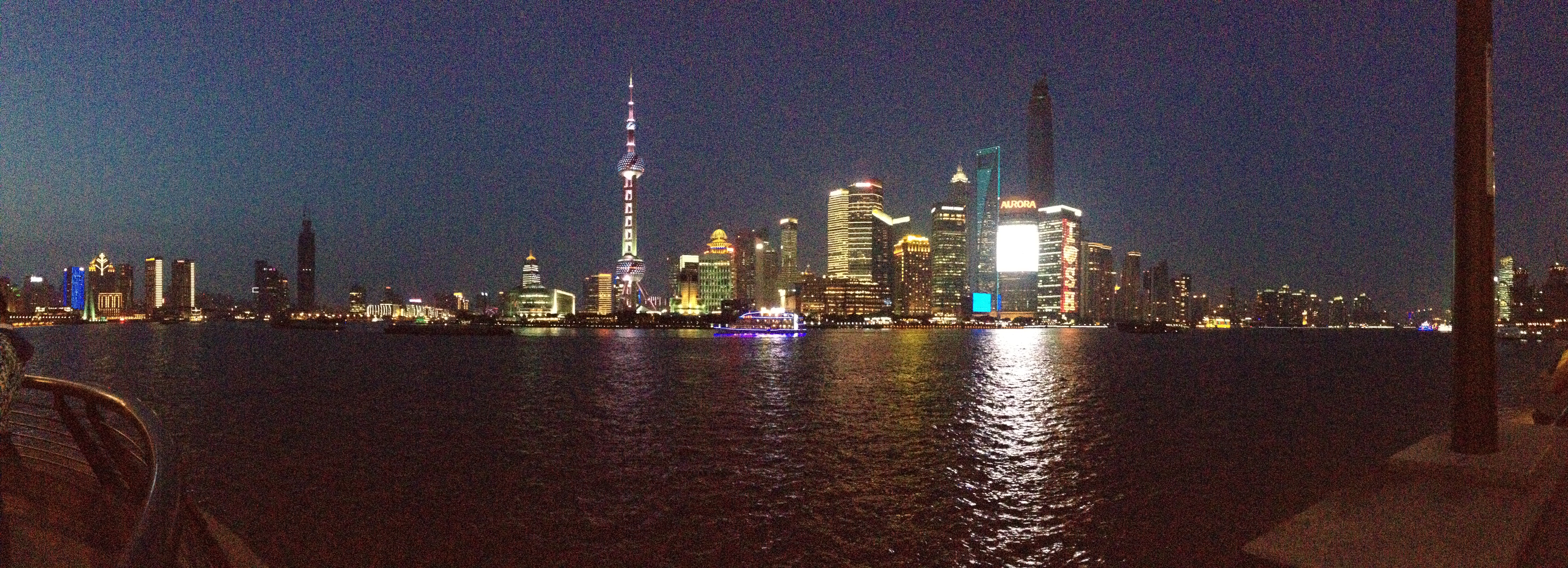 At 7pm, the lights on the Bund turn on, synchronized to the bell tower (an anachronism itself). I sat slightly chilled on the boardwalk, looking at the mass of steel and glass and concrete across the river. I fought the urge to tap my foot – I mean, just turn on already! Why am I waiting out here for hours just to see some neon lights?