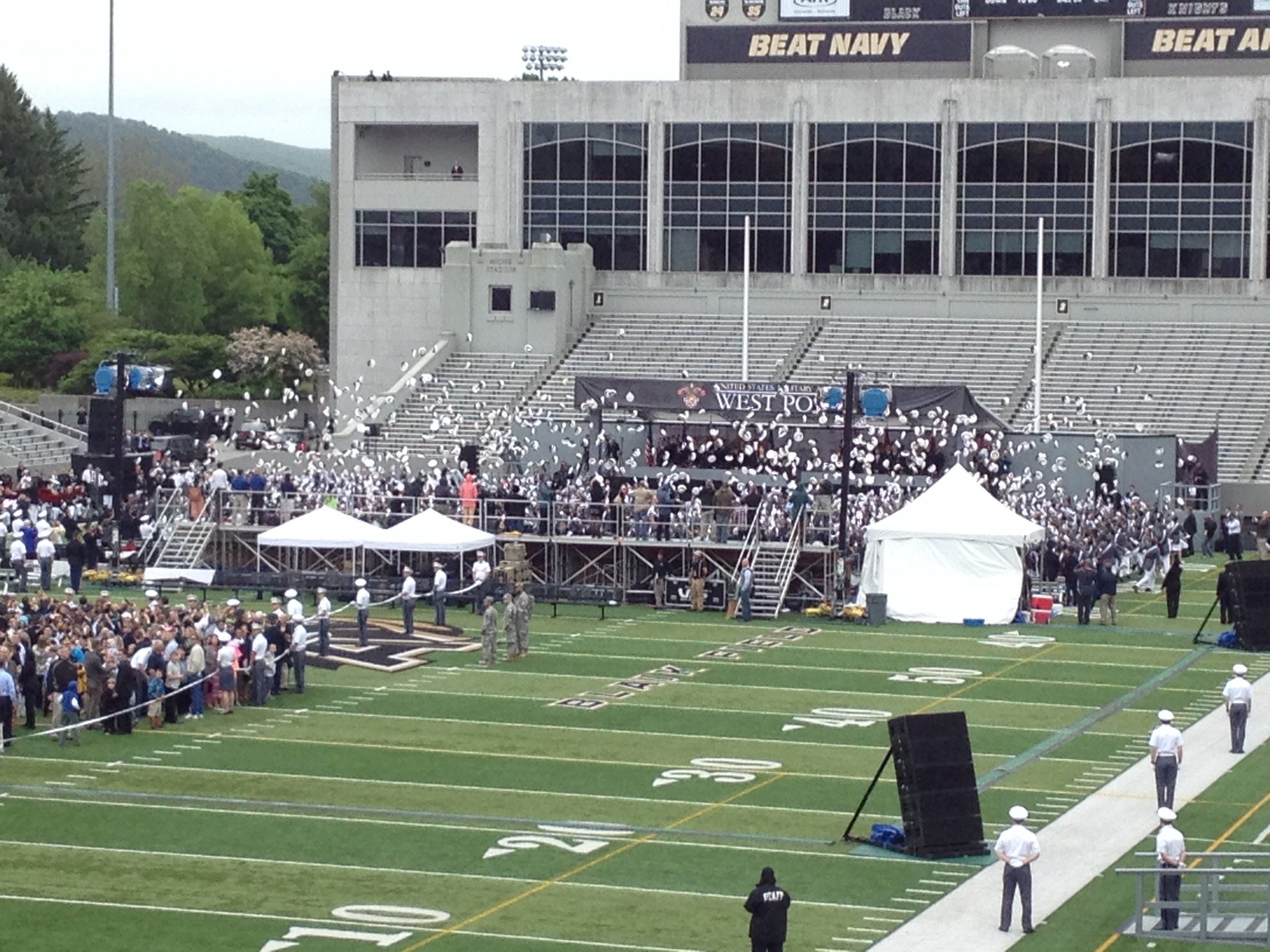 During Graduation, President Obama delivers a policy address which really doesn’t do or say much that’s uplifting. He does pardon all the minor offences of the underclassmen, which brought much rejoicing from the cadets. But I found myself a little unimpressed by his words – it was perfunctory and joyless. I didn’t like how people did not rise when Obama entered. You may not like the man, but you respect the office of the leader of our country, and rise as is custom. Even some of the cadets looked like they did not stand. I do not approve. Has our petty politicking got to the point where we have forgotten the basic terms of etiquette?