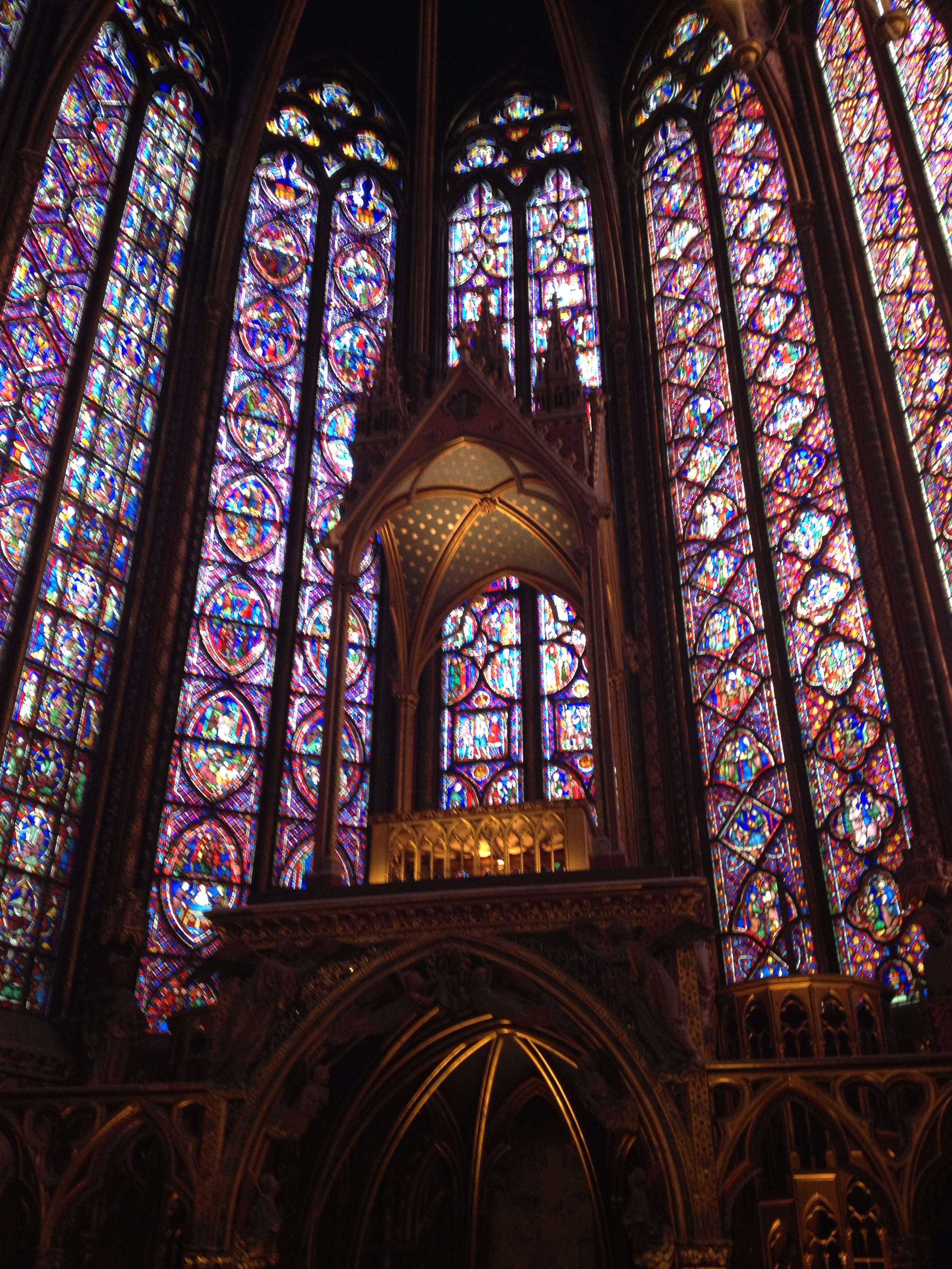 – Saint Chapelle – if you like stained glass, you must go to Saint Chapelle. It’s 9 euros to enter, and they are just finishing up the restoration of the glass. The exterior looks bulky in stone, but inside it looks like the walls are made of glass. It’s an impressive feat, and if you’re lucky and go when the sun is out, the upper chamber practically glows. Gorgeous.