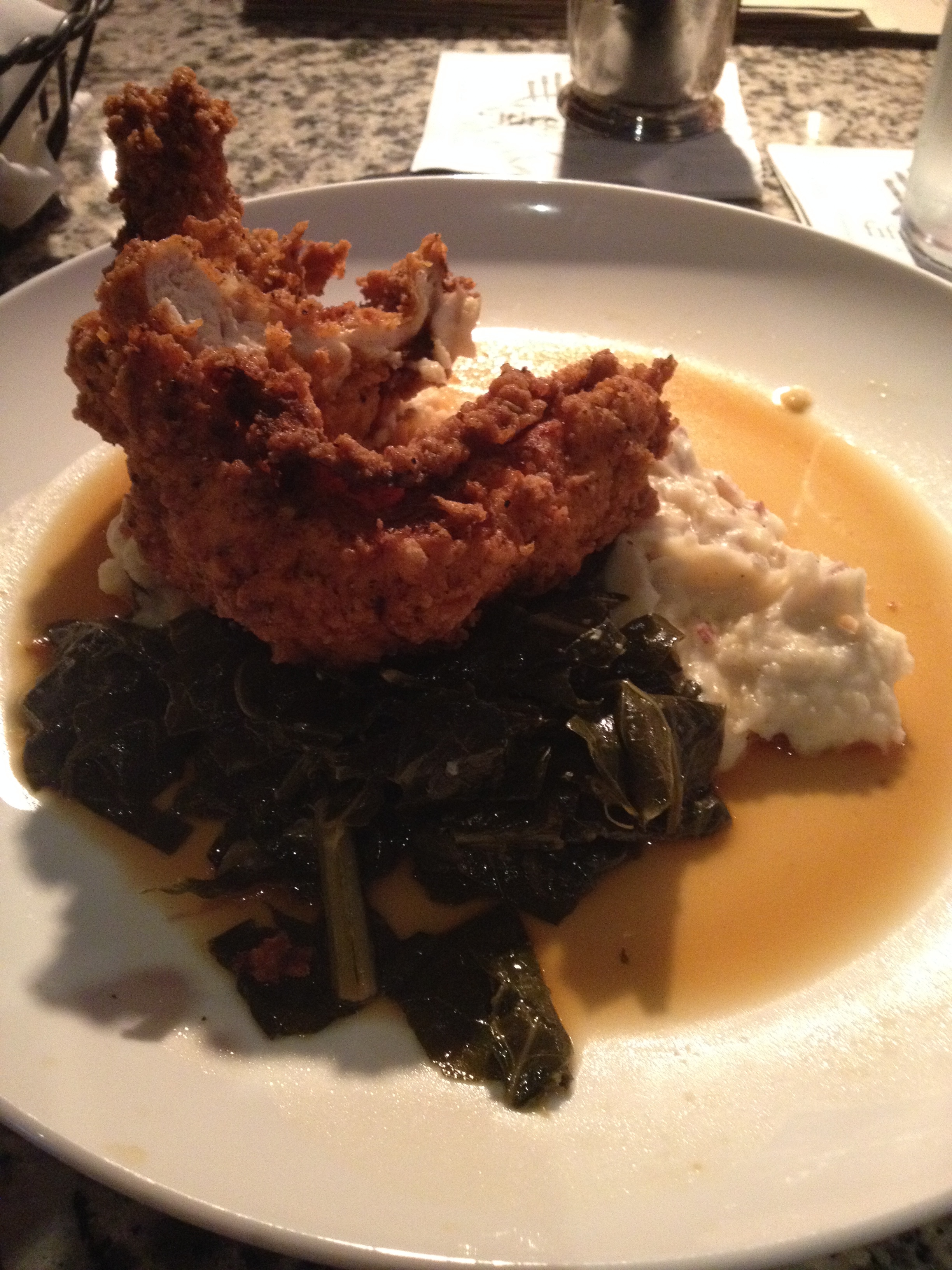 For dinner, I was pointed toward the South City Kitchen in Midtown. My shuttle driver, Tim, said it was a great place for soul food that wouldn’t break the bank. When I called there was an hour and change wait time, but when I arrived there was one seat left at the bar. I claimed it, and proceeded to gorge on food. Tim was correct – it was delicious. I had my first mint julep (pass – mint and whiskey and sugar did not work as I had hoped). The buttermilk fried chicken was excellent. I’m a sucker for rhubarb, and they had strawberry rhubarb hand pies.